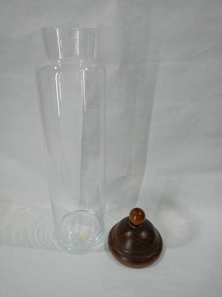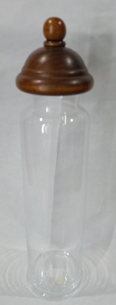 Barattolo in vetro soffiato con coperchio in legno a rilievo di Ballerini