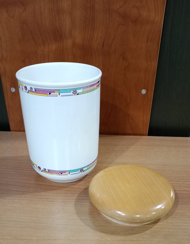 Barattolo per cucina in porcellana Richard Ginori con coperchio in legno