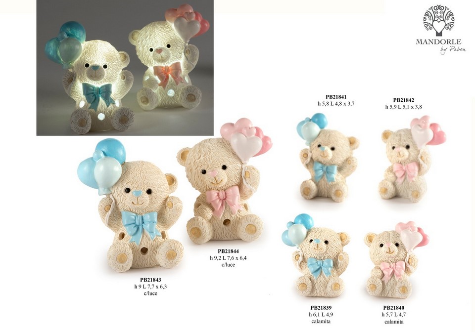 Bomboniere Battesimo Mantova - Orsetto in resina con palloncino celeste e luce