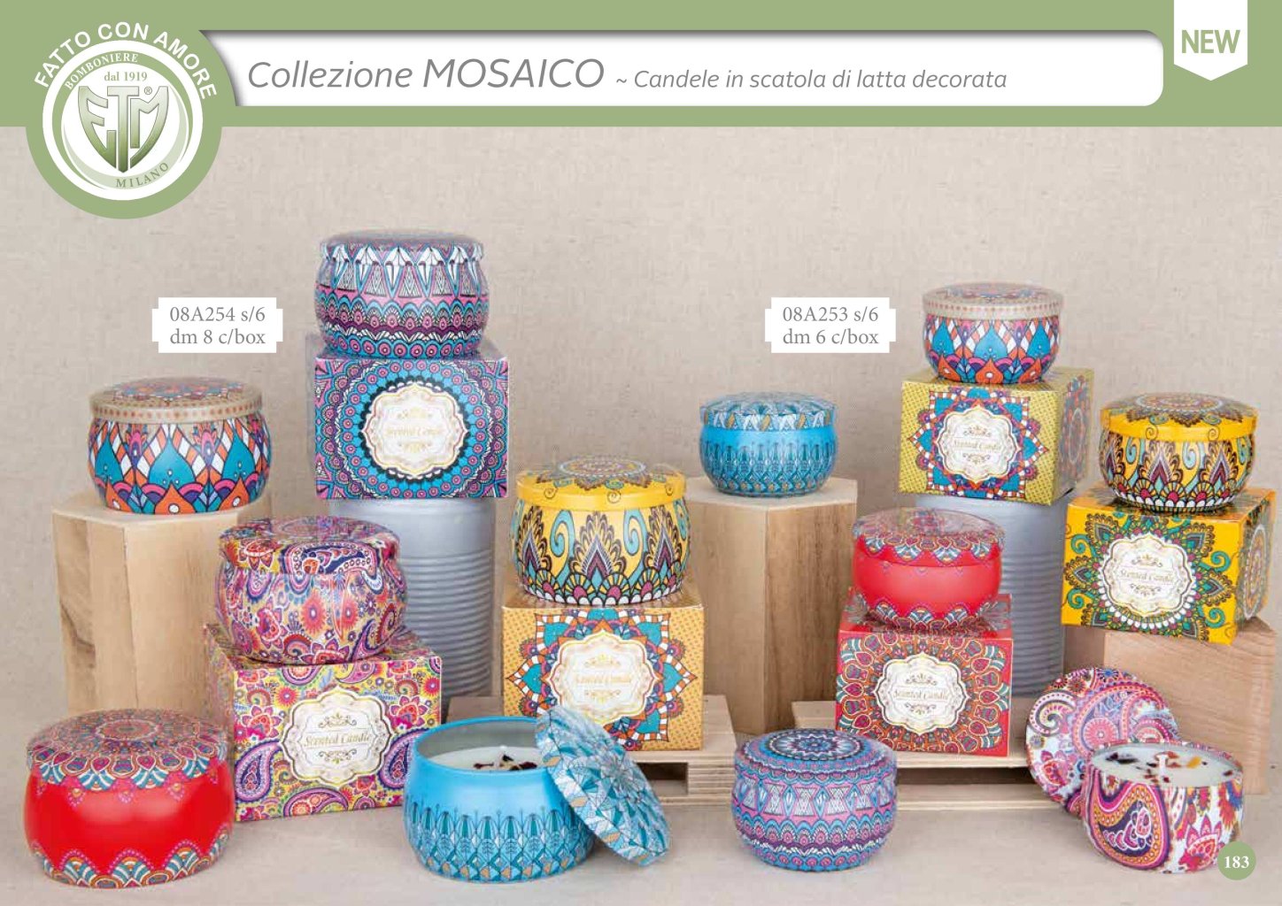 Collezione Mosaico - Candele in scatola di latta decorata
