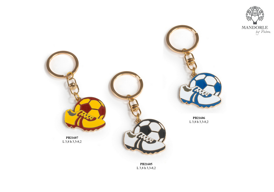 CAMPANIA BOMBONIERE COMUNIONE - Portachiavi Pallone e Scarpa giallo e rosso da calcio in metallo