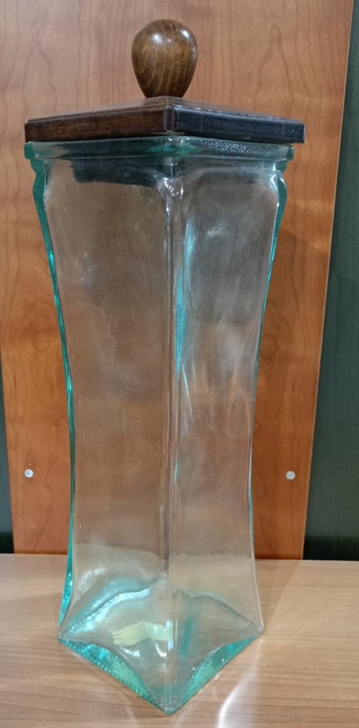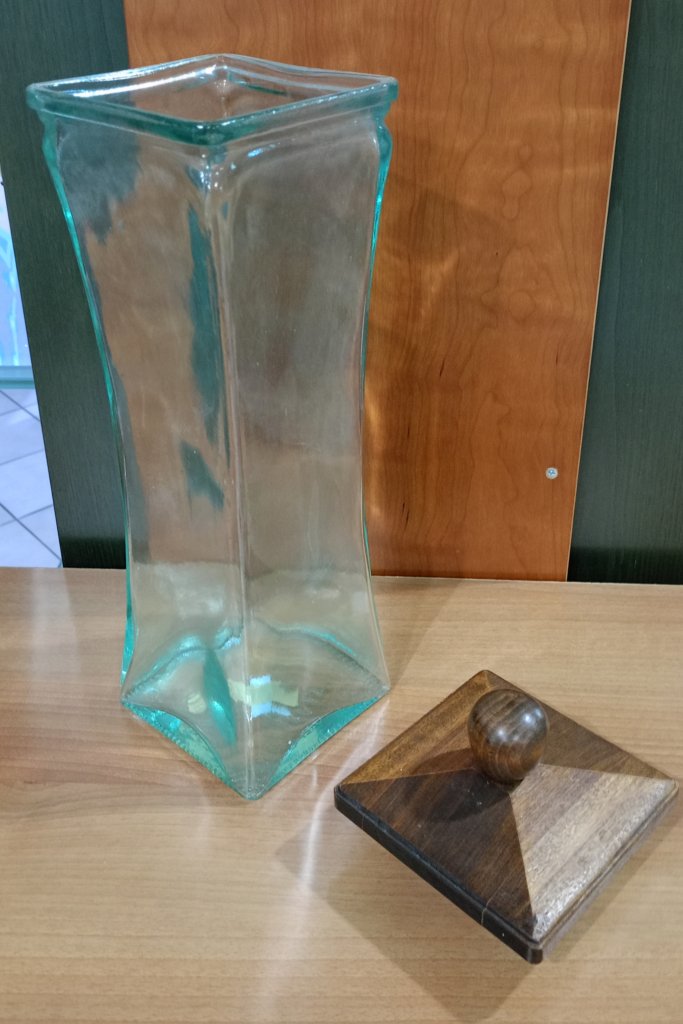Vaso alto di Ballerini in vetro verde con coperchio in legno a rilievo