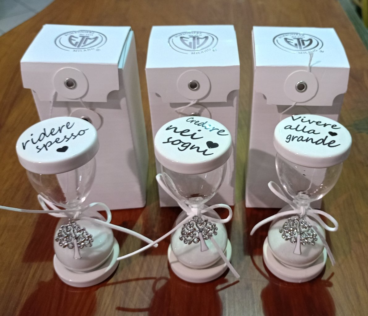 Bomboniere Matrimonio Toscana Smalto Clessidra completa di scatola regalo