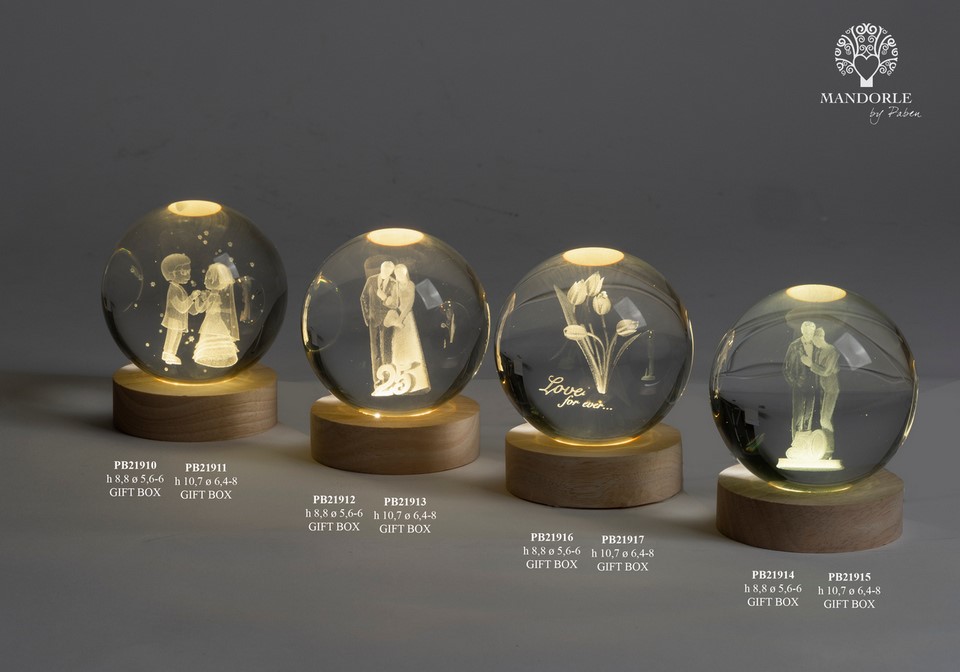 Globo su base bimbi sposini in cristallo e legno con luce completo di scatola regalo