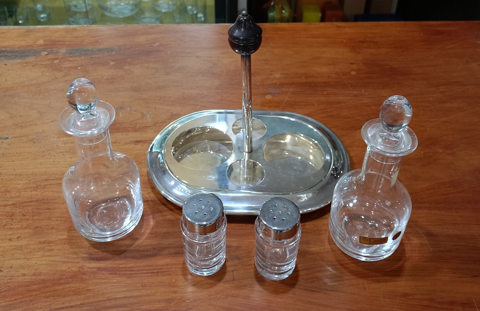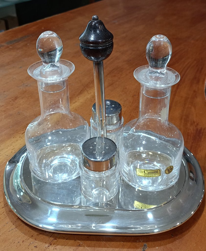 Olio Aceto Sale e Pepe in argento galvanico e cristallo di "F.lli Cassetti".