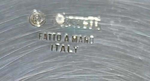 Composto da un contenitore ovale e stilizzato di cm. 22 con all' interno le boccette in cristallo presenta un manichino con rifinitura in argento lega Cassetti e legno.