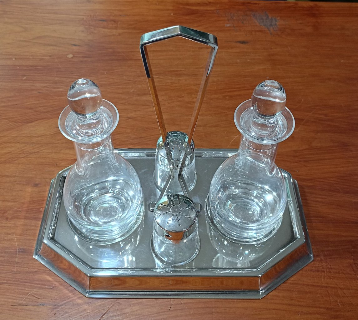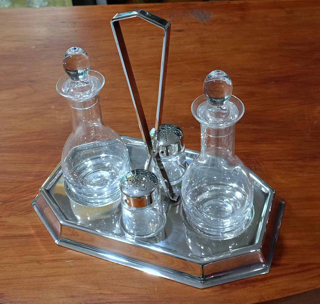 Olio Aceto Sale e Pepe in argento galvanico e cristallo di "FALA"