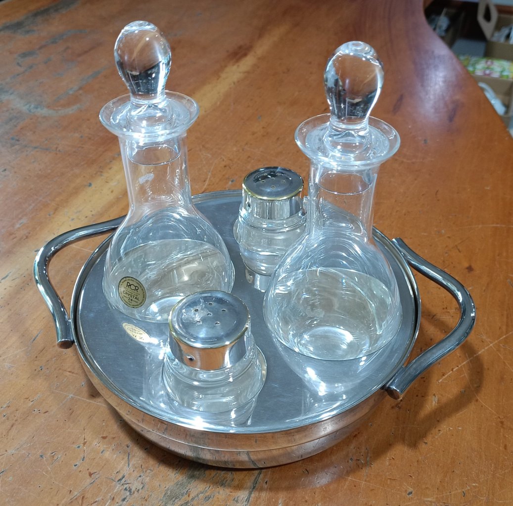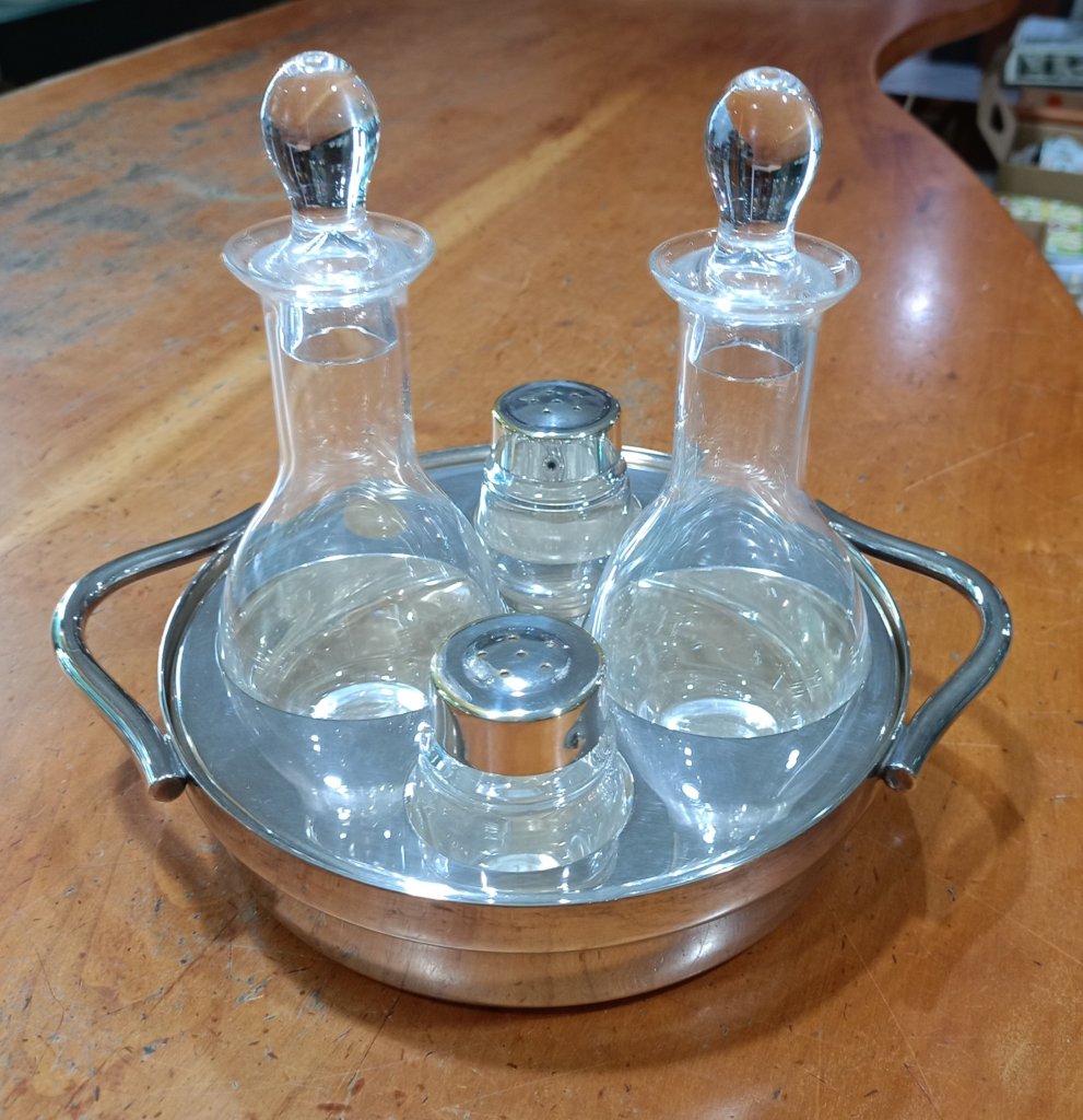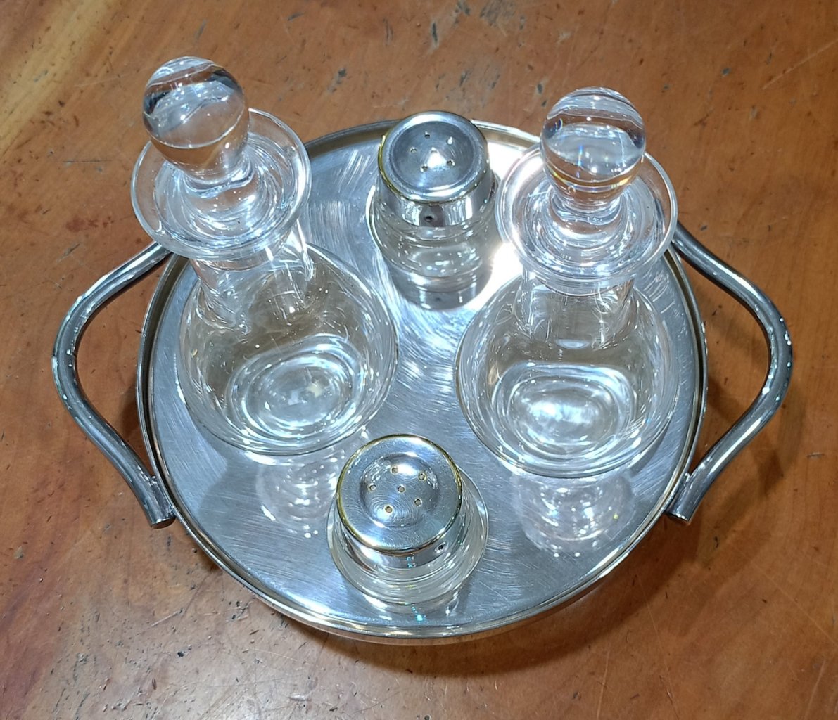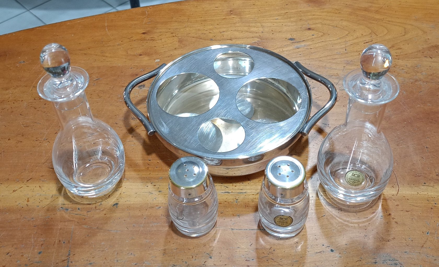 Olio Aceto Sale e Pepe in cristallo e lega argento "FALA"