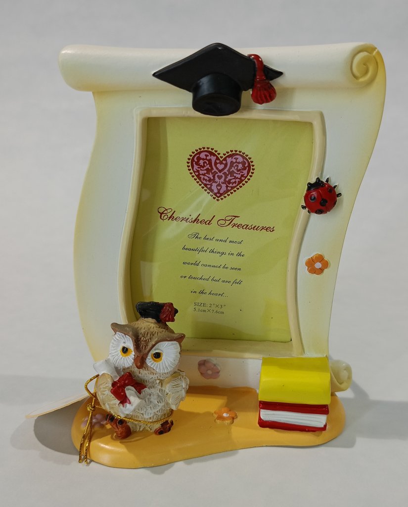 Questa elegante cornice raffigura una pergamena con cappello da laureato e dettagli simbolici