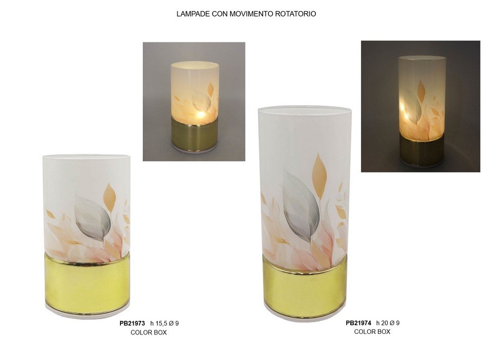 Lampada cilindrica con fiori in vetro e plastica completa di scatola regalo