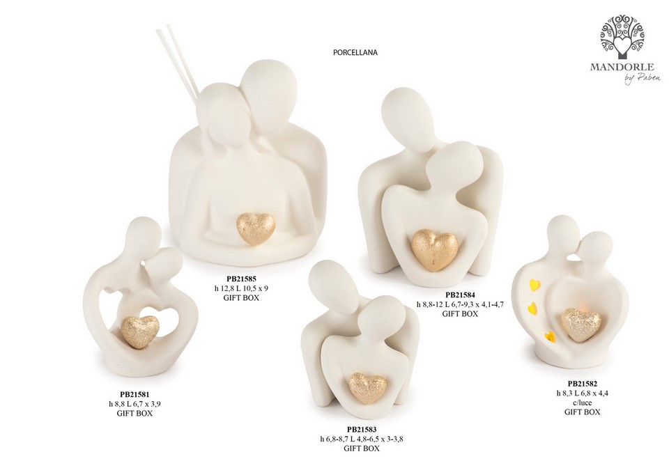 TOSCANA - Gruppo innamorati Mezzo Busto in porcellana con cuore stilizzato completo di scatola regalo