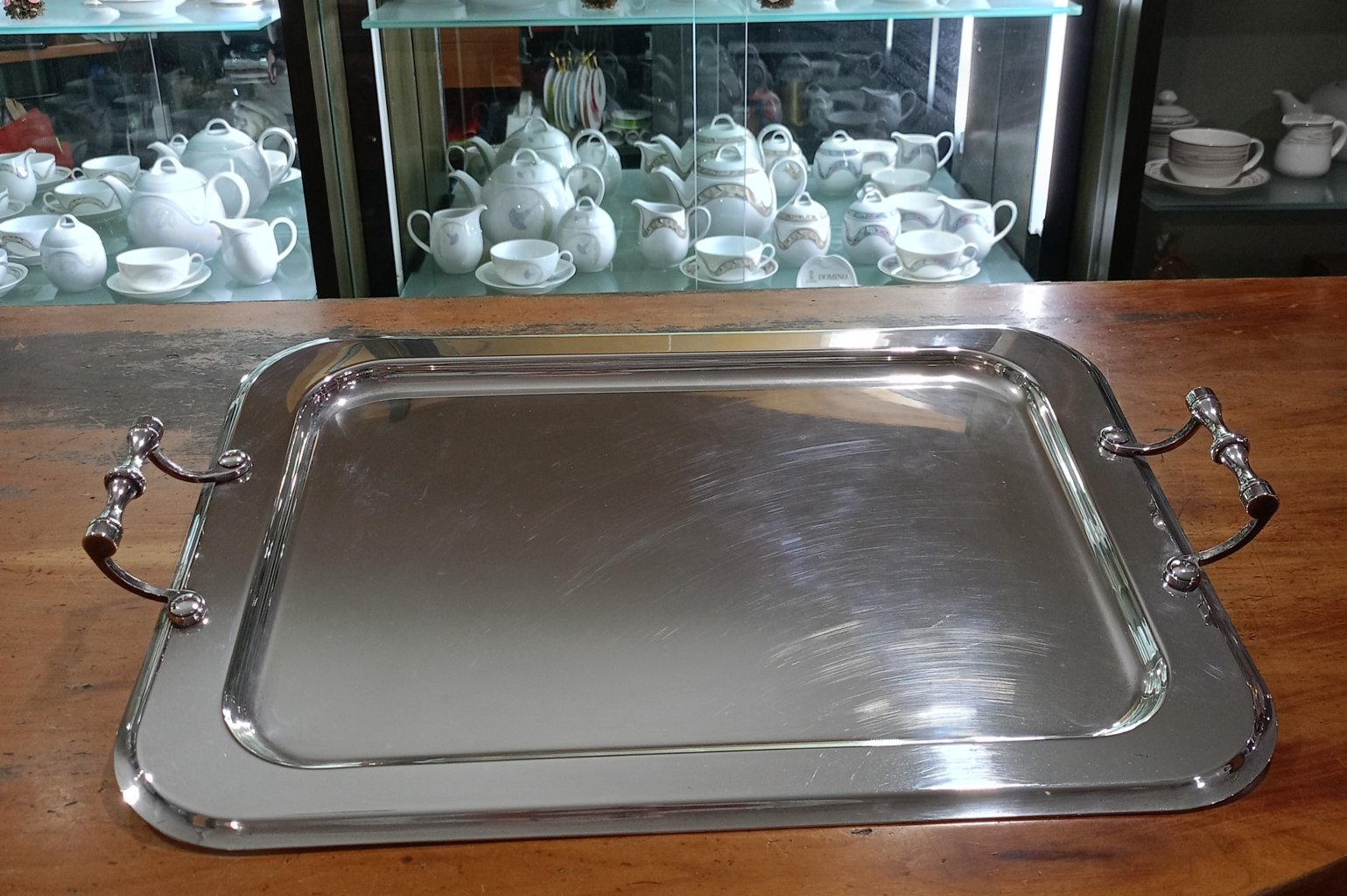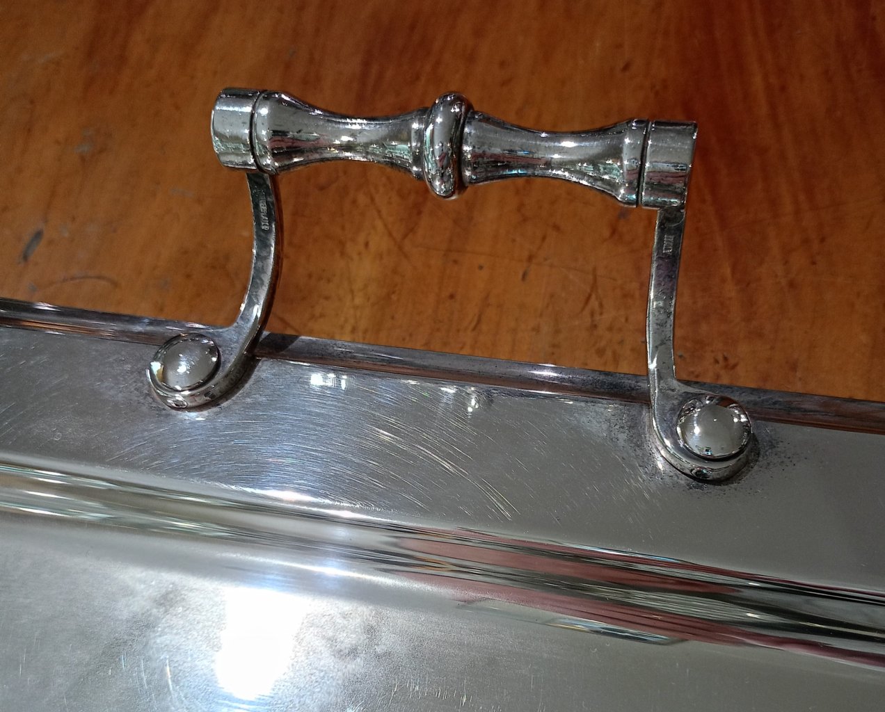 Vassoio rettangolare con manici in lega argento